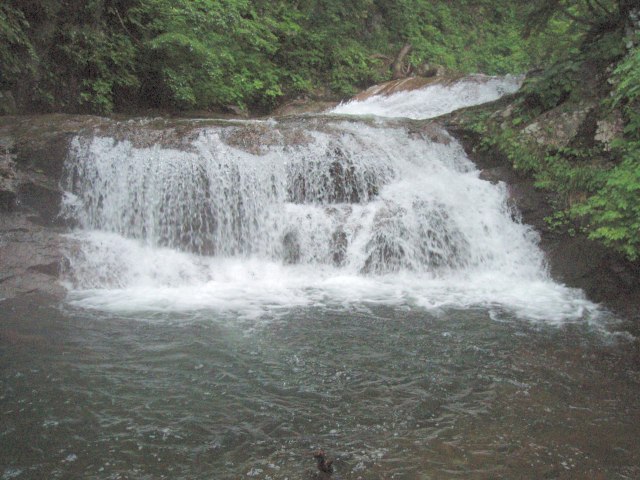 天気が良ければ、シャワーを浴びながら楽しめそうなのだが。。。 雨の中、カッパを着てると気分が良くない。 水を浴びる気にもならず、黙々と巻き気味に越えていく。 |