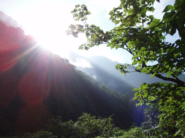 入渓した武能沢まで降りてきて、夏空ですね。。。