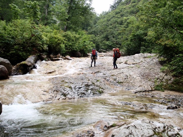最初はこんな感じでなかなかきれい。 それでも、曇りだし水にどっぷり浸かるのはちょっと遠慮しとくかな〜。。 なのでヘツリ気味に越えて行く。