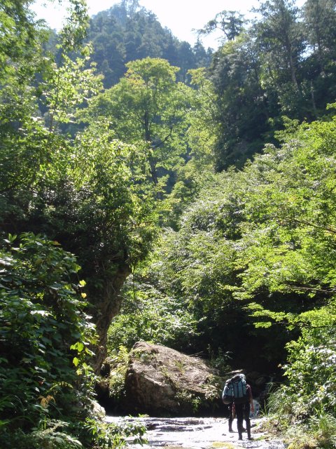 9/5:矢木沢林道9:35〜堰堤上入渓10:25〜東メーグリ出合11:25/11:50〜二俣12:55/13:30〜泊場15:20